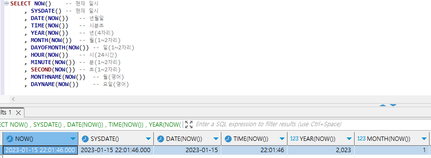 SELECT NOW() -- 현재 일시