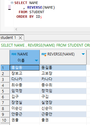 - 컬럼에 들어있는 문자열 역순 출력