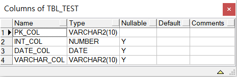 거기에는 VARCHAR2(10) 타입의 PK_COL 이라는 컬럼